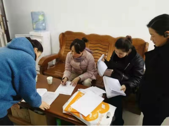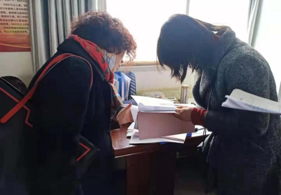 图为乾县纪委监委抽调派驻纪检监察组干部在姜村镇田晁村检查党委换届工作。