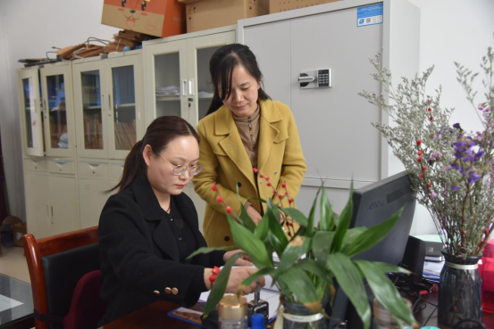 图为县纪委监委案件监督管理室两名女干部正在精心梳理、规范案件资料。