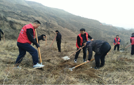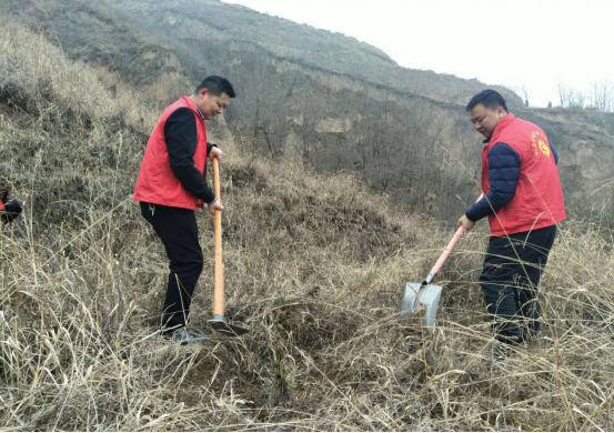 图为彬州市纪委监委班子领导带头在荒坡上翻土挖坑