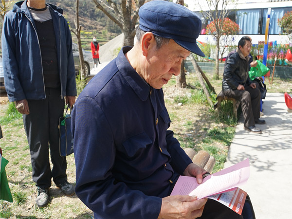 参加活动的干部、群众仔细阅读信访举报知识。