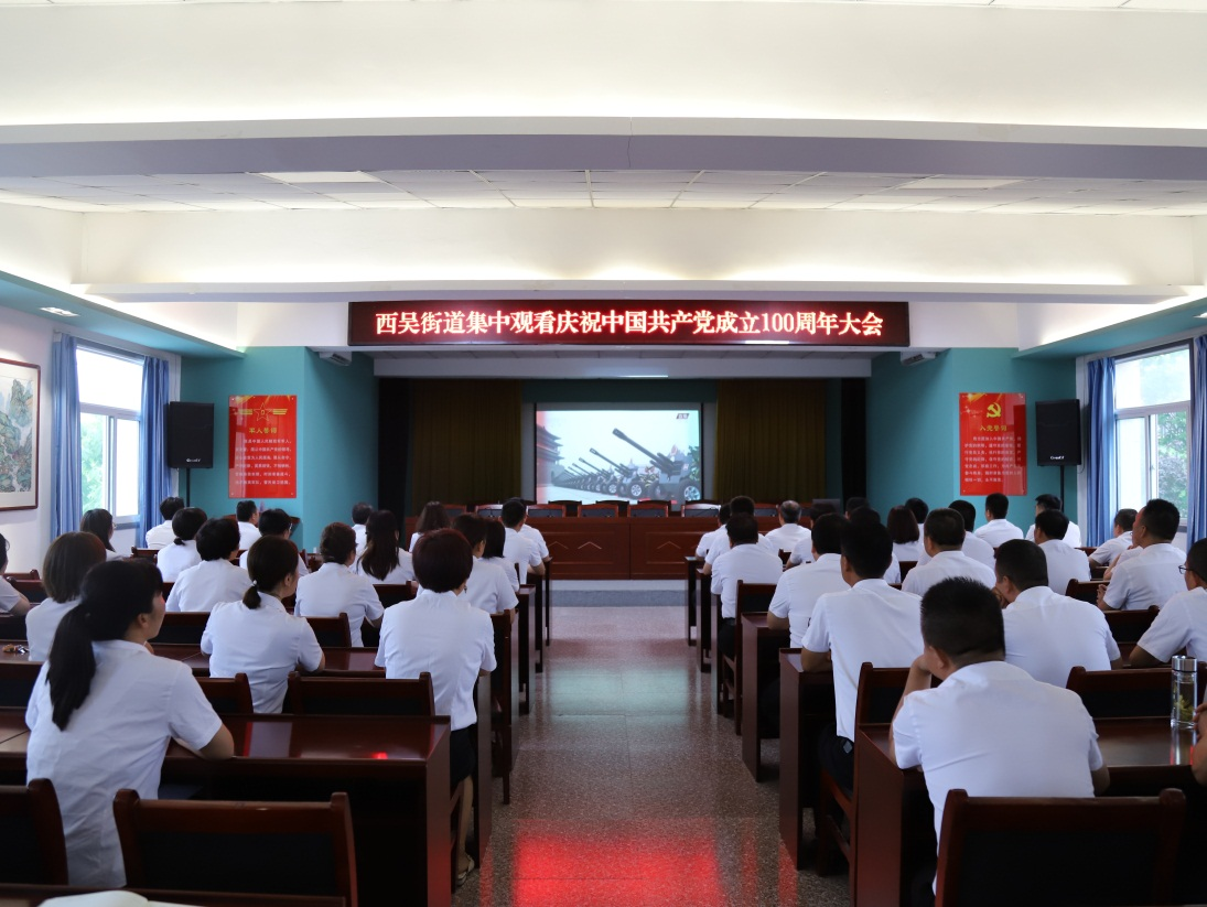 图为兴平市镇(街道)纪检干部收看庆祝大会盛况