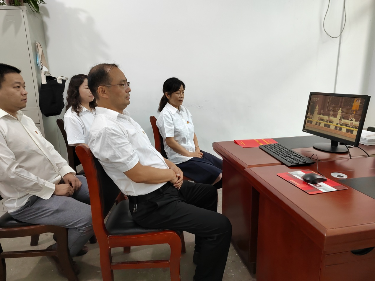 图为兴平市纪委监委机关集中收看庆祝大会盛况