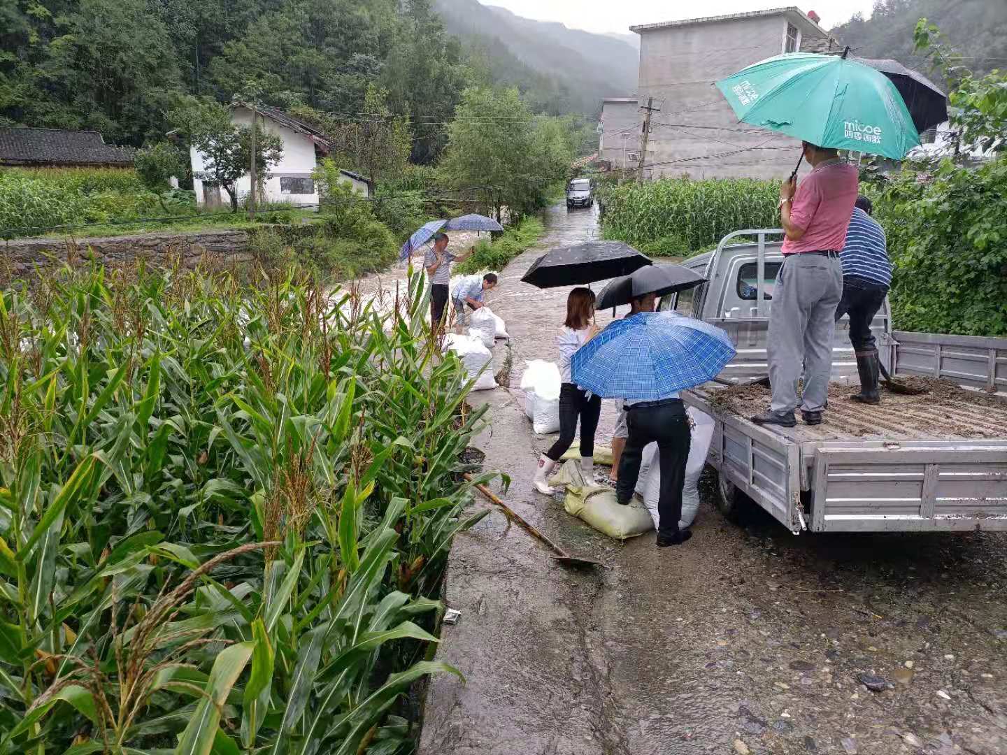 图为汉滨区纪检监察干部到村督导防汛防滑及群众转移情况,并到包联村查看雨情及路面破损情况,组织四支队伍加固河堤、预防农作物受洪水损毁,及时转移撤离群众。
