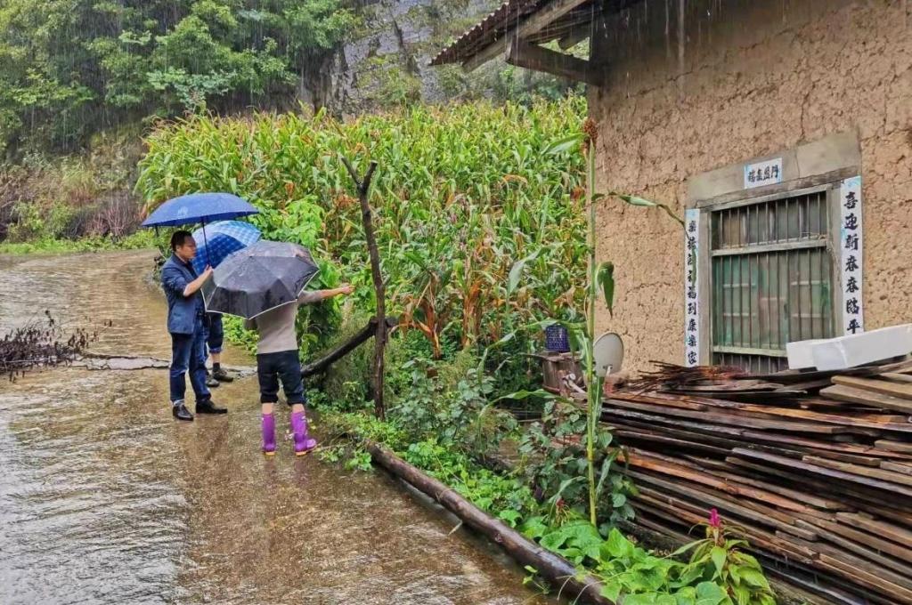 旬阳市麻坪镇纪委干部在老庄沟村落实重点人群防汛防滑转移撤离工作。(旬阳市纪委监委)