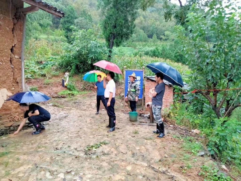 旬阳市神河镇纪委干部现场查看灾情并组织房屋存在安全隐患的群众迅速撤离。