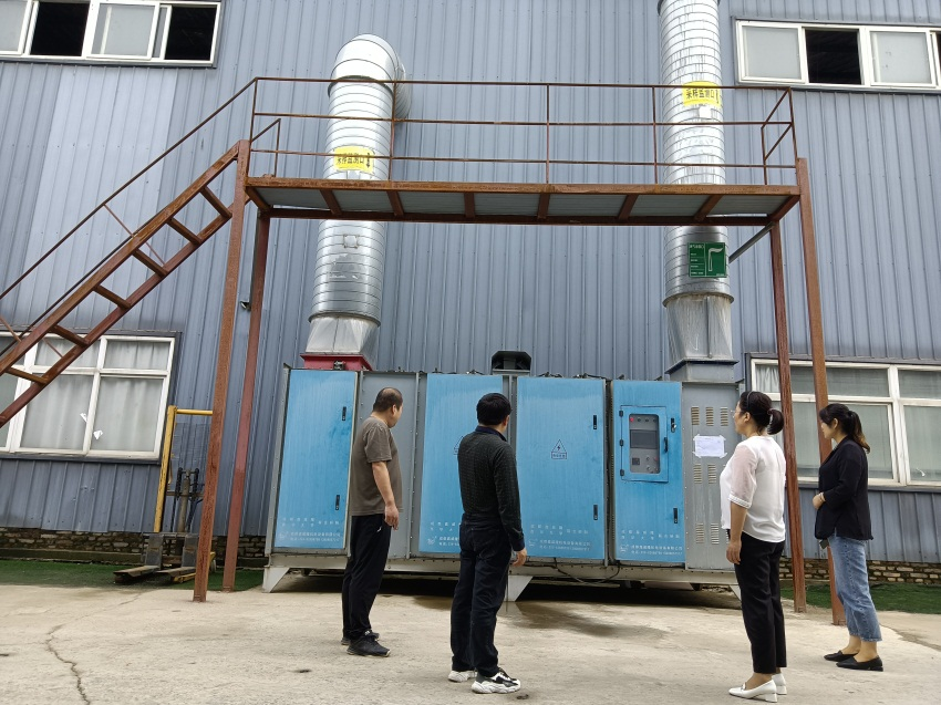 生态环境领域专项督查组聚焦环保领域,在丰仪镇陕西蓝盾创展门业有限公司生产线,查看废水废气处理设备运行以及处置情况。