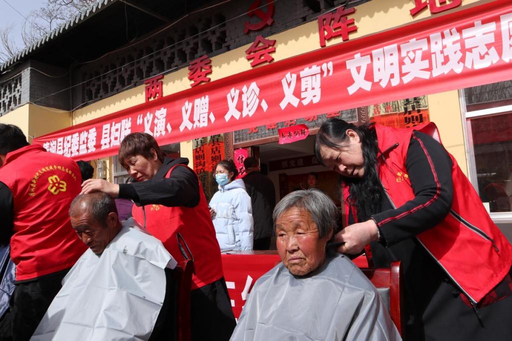 随后,志愿者还为有需求的村民进行了义务理发。该村居住的大多是老年人,出行不便,爱心理发师主动上门仔细认真地为他们清洗理发,精湛的手艺和热情周到的服务得到了乡亲们的一致称赞。同时,店则沟镇卫生院的医护人员为前来参加活动的群众进行了量血压、测血糖等义诊工作,真正把健康送到了百姓家门口,让大家在阳光明媚、春回大地的时节里有一份清清爽爽、开开朗朗的好心情,更积极、更健康地投入到生产生活当中。
