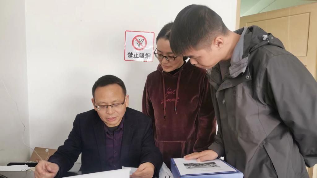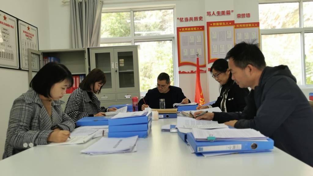 汉滨区委第二巡察组工作人员在汉滨区叶坪镇查阅资料,探讨业务。