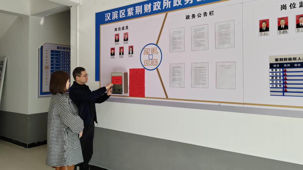 汉滨区委第三巡察组工作人员在汉滨区紫荆镇政府设置举报信箱,收集线索。