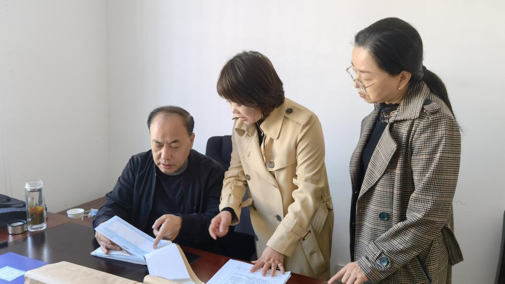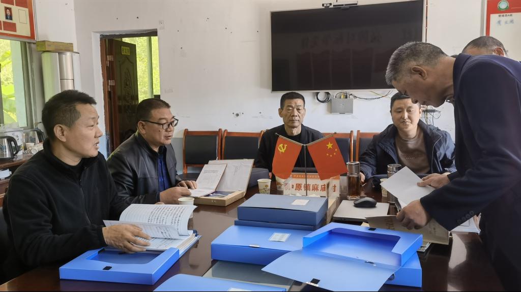 汉滨区委第一巡察组工作人员在汉滨区中原镇麻庙村查阅资料。