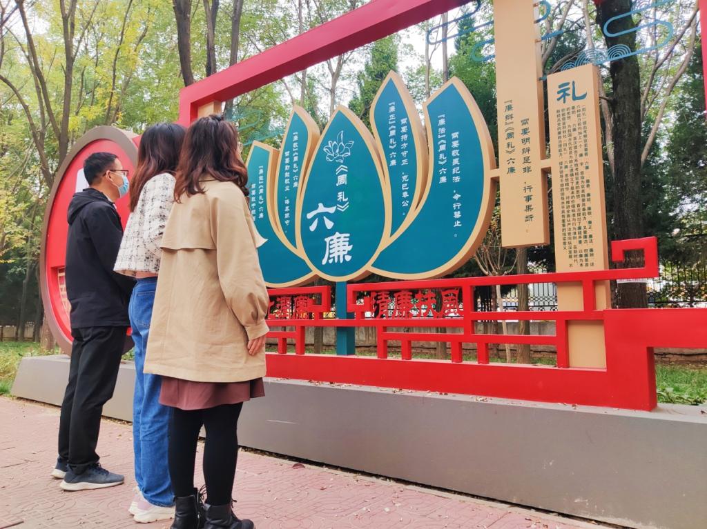 “我没事就会和家人到这条街道,走走步、观观景,追抚西周青铜器蕴含的廉洁忠告、德治思想,感悟老一辈革命家的家国情怀、高风亮节,重温扶风名人廉吏、著名党史人物的凌云壮志、清廉操守,教育儿孙要修身养性、勤俭持家,清白做人、干净干事……”10月24日,在扶风县城新区西三路,一位附近居住的居民正在向朋友介绍这一廉洁文化“网红”街区。