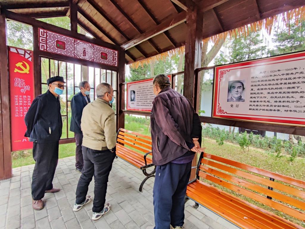 老党员驻足在扶风著名党史人物为主题的初心坊