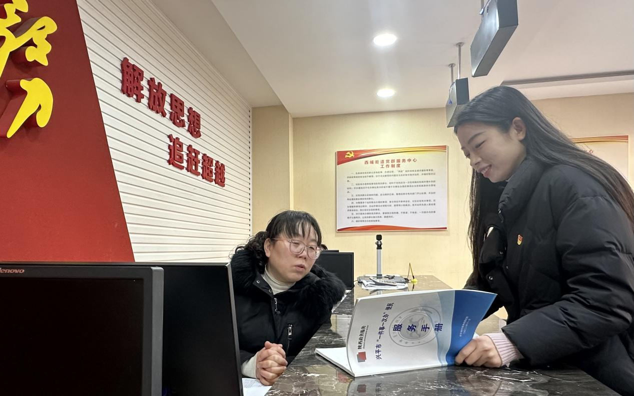 兴平市纪委监委深入推进乡村振兴领域不正之风和腐败问题专项整治,延伸监督触角,全面收集“民声”“民意”,确保群众诉求快速反应。图为该市纪检监察干部在西城街道党群服务中心向工作人员了解“一件事一次办”便民服务落实情况。(兴平市纪委监委)