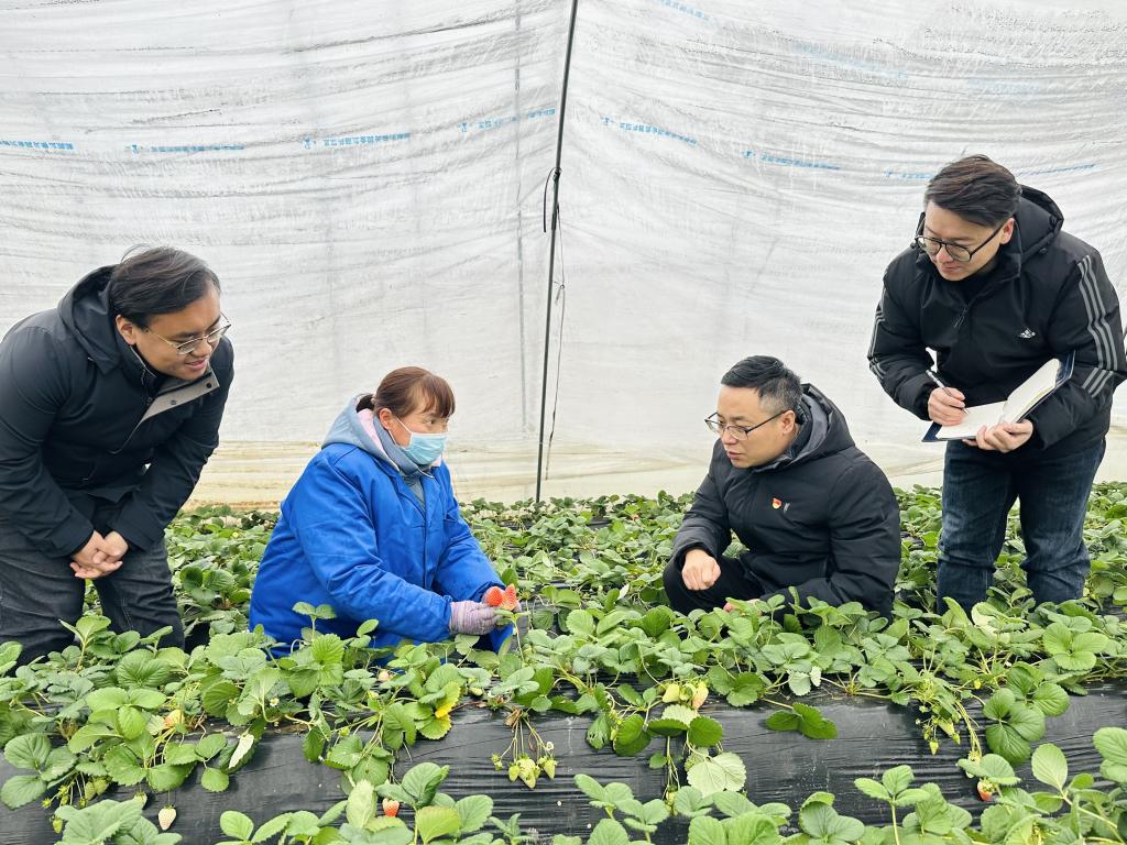 兴平市纪委监委以专项整治为“小切口”,开展“深治理”,深化运用“组地”联合监督模式,深入田间地头、产业基地,以点促面撬动全域实现乡村振兴。图为该市纪委监委干部联合阜寨镇干部在辖区草莓产业融合发展示范园了解惠民政策落实情况。