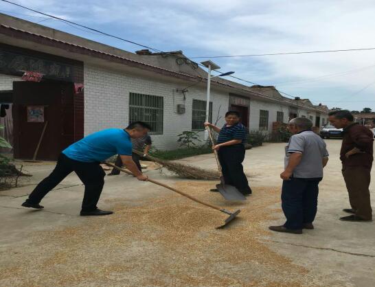 纪委监察局同志帮助贫困户碾场、晒麦、装麦。望着金灿灿的小麦,感受着真情帮扶,贫困户动情谢道:“感谢、感谢,辛苦了、辛苦了。”