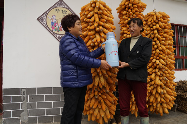 根据检查情况县纪委领导对环境清扫效果明显的群众,发放奖品。