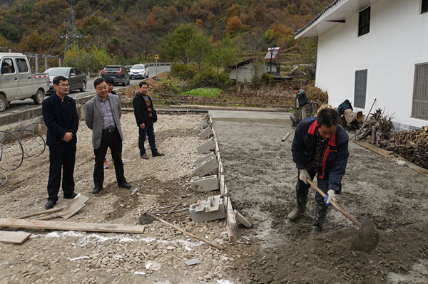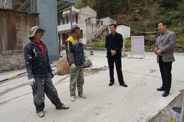 李忠华与驻村工作队查看村人居环境提升工程进展情况。