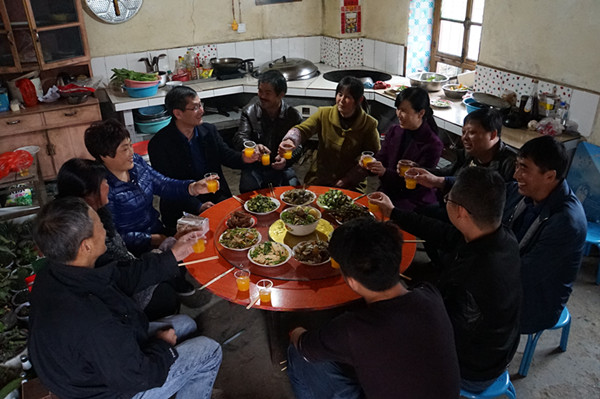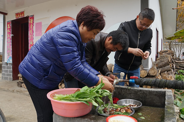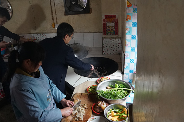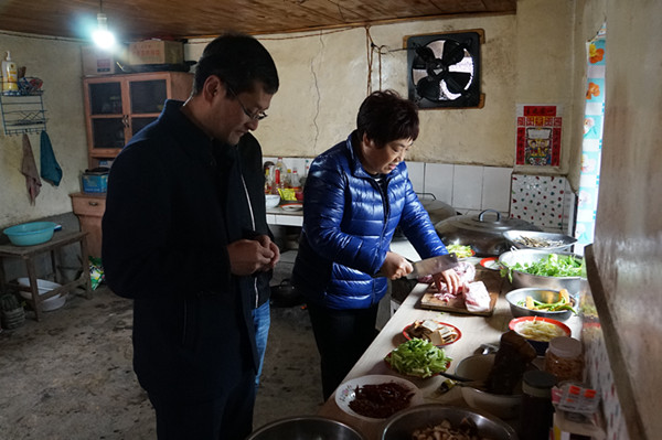 为了在贫困户家中做一顿饭,干部们早早的准备,自费从县城买了些菜、肉和饮料,大家齐动手,很快一桌桌丰盛的晚餐端上桌子,吃饭中,大家围坐在一起,边吃边聊扶贫事宜,气氛一片喜乐融融。(宁陕县纪委监委)