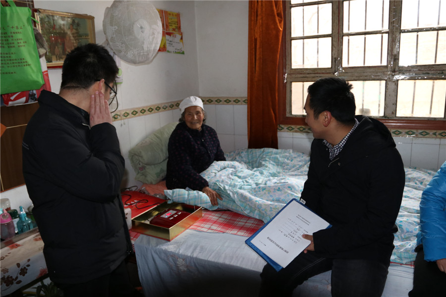 下午三点半,走访贫困户,看望慰问老人
