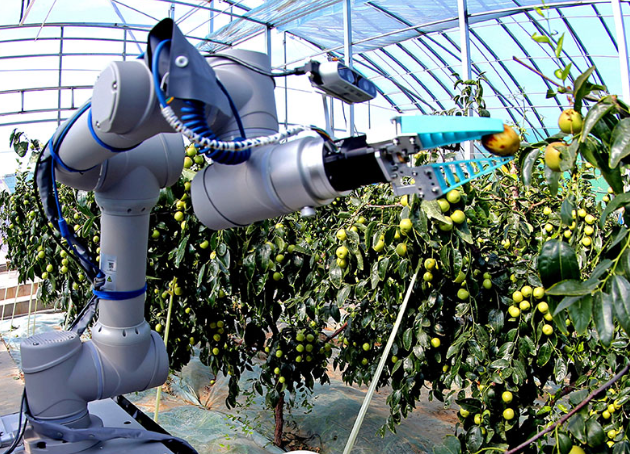 全国首台“蓝侠”冬枣采摘机器人在大荔县冬枣种植农场投入实验运作。