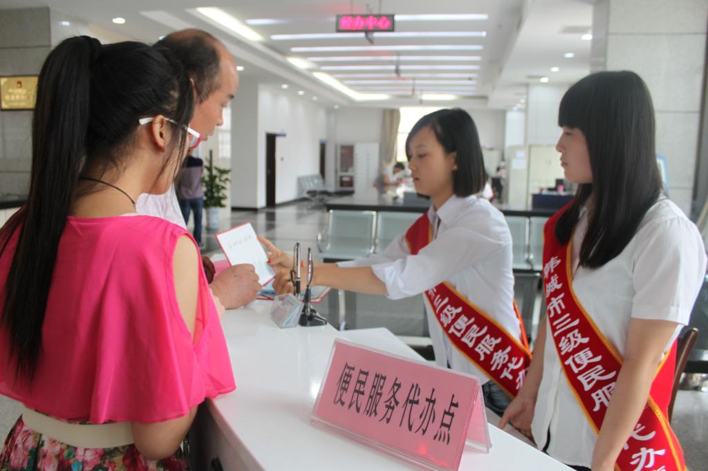 今年7月开始,陕西省韩城市面向全市推行便民服务三级代办制,只要群众把申办事项及有关材料交给代办员,村上能办的直接予以办理,需要由镇或市办理的,限时承诺,集中统一办理,办好后由村代办员或包村干部,直接送达群众手中。图为近日,该市便民服务点代办工作人员受理群众代办事宜。