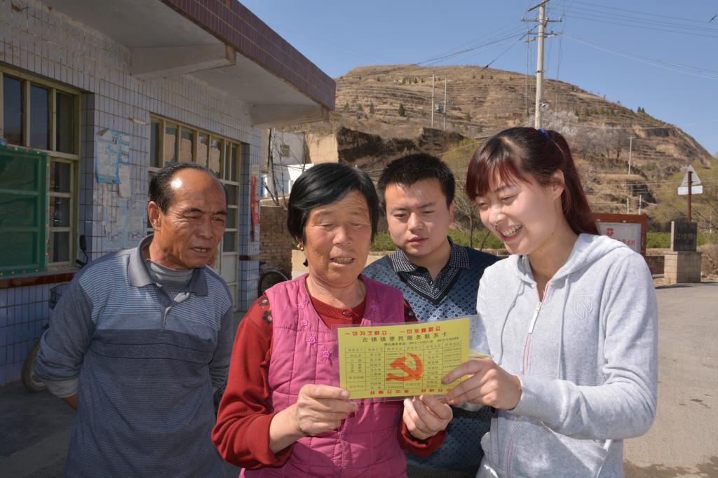 在第二批党的群众路线教育实践活动中,陕西省绥德县把“改进作风、为民服务”作为活动的重点,全县16个乡镇政府全部印制了“便民服务联系卡”,联系卡公开了乡镇政府办公室、出纳、民政、老龄办等部门的服务范围和对应业务人员的联系方式。联系卡上还附有驻村干部的照片和监督电话,方便群众联系和监督。截至目前,全县已向村民发放联系卡13多万张。图为近日,绥德县吉镇干部(右一)向村民讲解“便民服务联系卡”的用途。