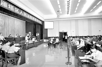 近日,陕西省西安市雁塔区纪委组织220名新任村官到法院庭审现场旁听村干部侵占群众利益案件的审理,以增强警示教育效果,形成震慑。图为庭审现场。