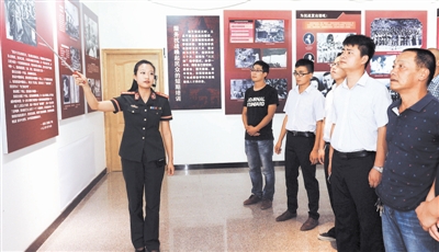 为纪念中国人民抗日战争暨世界反法西斯战争胜利70周年,“抗战中的延安鲁艺”图片展在延安市文化艺术中心开展。展览通过400余幅图片介绍了抗日战争时期鲁迅艺术学院的发展历程。图为8月14日,市民在参观“抗战中的延安鲁艺”图片展。