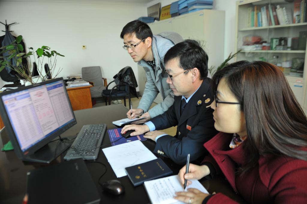 连日来,陕西省铜川市纪委派出督查组会同税务部门,排查餐饮、酒店、超市等行业对公开票情况,严查春节前党政机关、国有企事业单位违规公款消费问题。图为2月11日,督查组和税务部门工作人员查看开票情况。