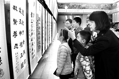 陕西省富平县通过晒家训、立家规等方式,深入挖掘传统文化中的思想精华,弘扬优秀家规家训。图为该县近日举办的“严家教、树家风、扬美德”书法作品展现场。