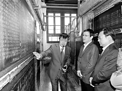 为提高广大党员干部廉洁从政和拒腐防变能力,陕西省西安市纪委充分挖掘西安碑林中蕴含的古代优秀廉政思想文化,建起西安碑林廉政教育基地。该基地自2014年1月建成以来,先后有3万余名党员干部在此受到教育。图为近日,机关党员干部到碑林廉政教育基地接受教育。