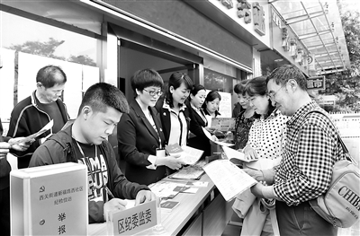 连日来,陕西省宝鸡市金台区纪委监委在“不忘初心、牢记使命”主题教育中,组织纪检监察干部深入镇街、村组(社区)走访,着力摸排群众身边的腐败和作风问题线索,切实维护群众利益。图为近日,该区纪检监察干部在西关街道新福路西社区发放宣传资料,设置举报点,接待群众来访。