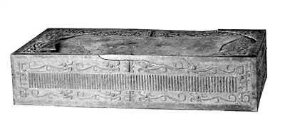 1号“禁”是长方体器座,长94.6厘米,宽45厘米,高21厘米。禁是一种承酒樽的器座,根据文献记载,周朝初年曾经厉行禁酒,为了督促和警戒民众,将放置酒具的器座称为“禁”。这件禁的四面装饰直棱纹与夔龙纹。器物底部为空心,上方装饰以雷纹与夔龙纹的边框,夔龙纹、雷纹都是取凶猛神兽以表警示之意。