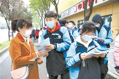 10月20日上午,在陕西省西安市公园南路特立实验小学门口核酸检测点,家长带着孩子排着长队。队伍中,有学生一边排队一边背书,有的同学在背古文,有的同学在背英语。其中,一名同学说,他们是交大阳光中学高二的学生,“抽空利用时间可以背得更快,利用闲暇时间,背得也能更熟一点。”勤奋好学的精神与淡定从容的面貌令人赞叹。