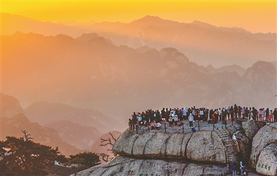 元旦假期,人们用各种方式乐享时光,迎接新年,欢度假期。图为游客在位于陕西省渭南市的华山西峰赏景。