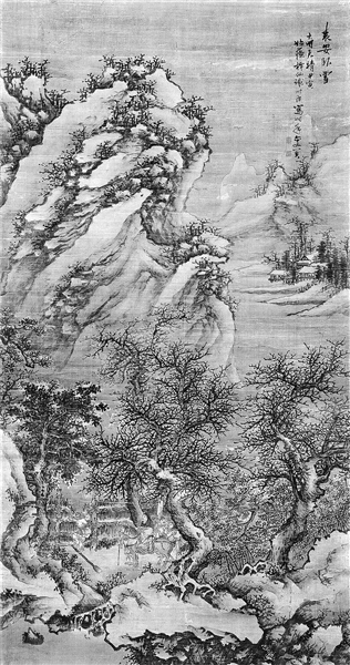 明代画家谢时臣的《袁安卧雪图》,并没有直接描绘袁安的形象,而是定格在洛阳令走向袁安住宅的一刻。袁安卧雪,或袁安困雪,是古代画家喜爱的题材,往往以山水表现高士的高洁。图片来源:视觉中国