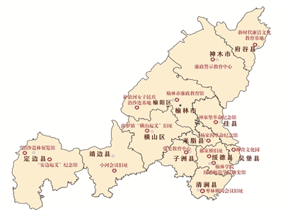 图②:榆林市主要廉洁教育场所分布示意图。