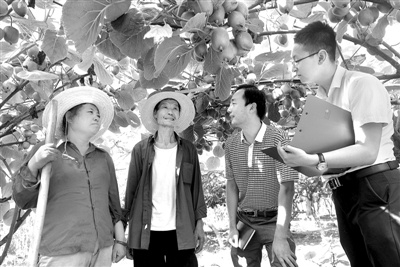 今年以来,陕西省宝鸡市渭滨区纪委将监督执纪问责的重点聚焦扶贫领域,坚持对干部违纪问题线索不查清不放过、责任不查明不放过、追责不到位不放过,严厉查处一批“蝇贪”,切实维护群众的根本利益。图为8月11日,区纪委工作人员在高家镇太寅村向果农了解相关问题线索。
