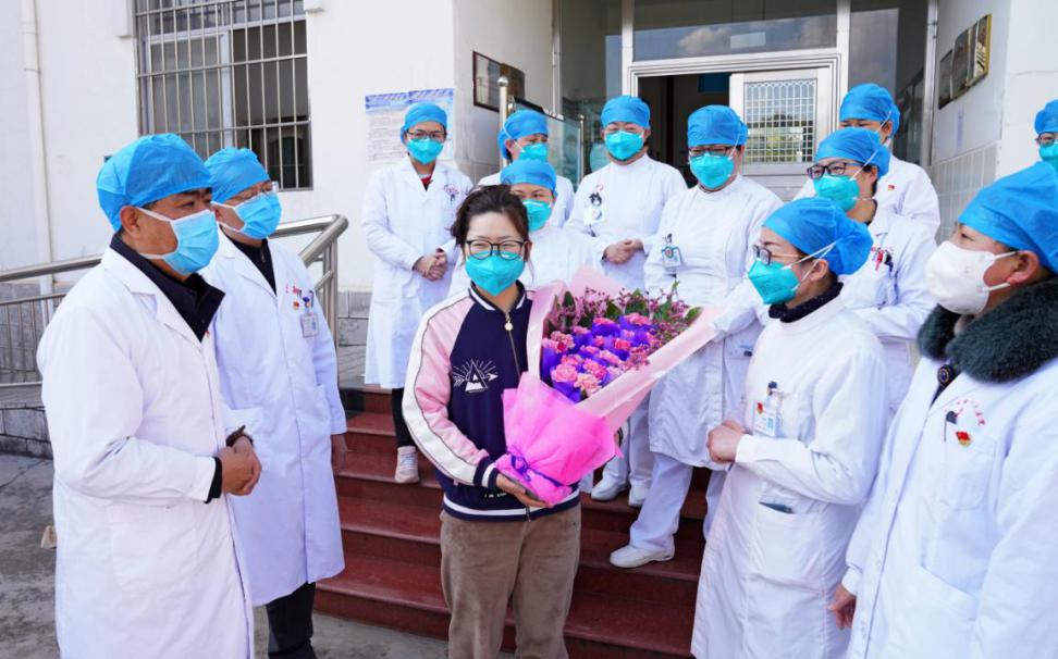 在医护人员的精心诊治和护理下,2月2日上午10时,云南省曲靖市首例新型冠状病毒感染的肺炎患者解除隔离,治愈出院。(云南省曲靖市纪委监委供 杨振平 摄)