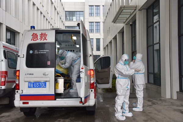 协和武汉市东西湖医院120急救站接到新型肺炎疑似患者病情危重电话后,120急救中心医护人员抓紧准备迅速出发。(武汉市东西湖区纪委监委供 游乐 摄)