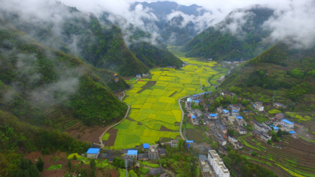 春分时节,陕西南部秦巴山区深处的旬阳市仁河口镇水泉坪,峰峦叠嶂,山雾缭绕,浓郁的农耕文化、淳朴的风土民情、连绵成片的油菜花海,吸引各地众多游客前来观光。(陕西省旬阳市纪委监委供宋海峰 摄)