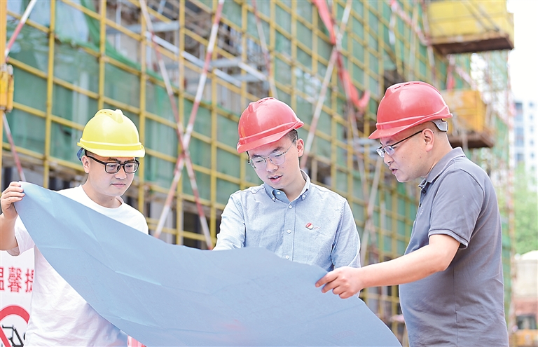 江西省赣州市章贡区组织党员干部深入一线走访调研,助企纾难解困。图为该区党员干部在某电动车辆制造有限公司项目建设现场了解情况。图片来源:视觉中国
