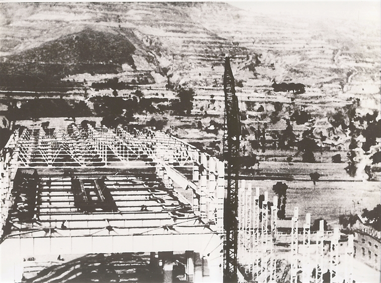 1966年,建设中的耀县基地一号试验厂房——彼时亚洲最大的静力试验厂房。受访单位供图