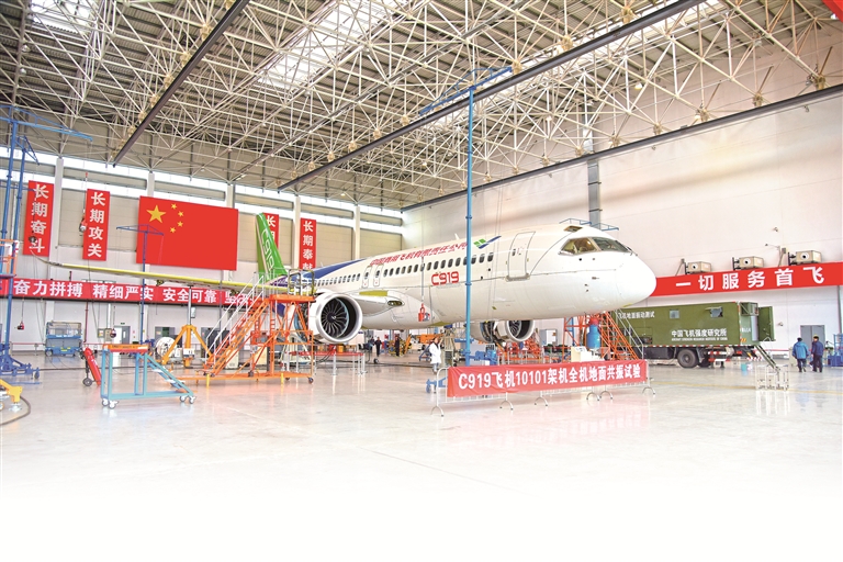 强度所在上海进行C919飞机全机地面共振试验。受访单位供图