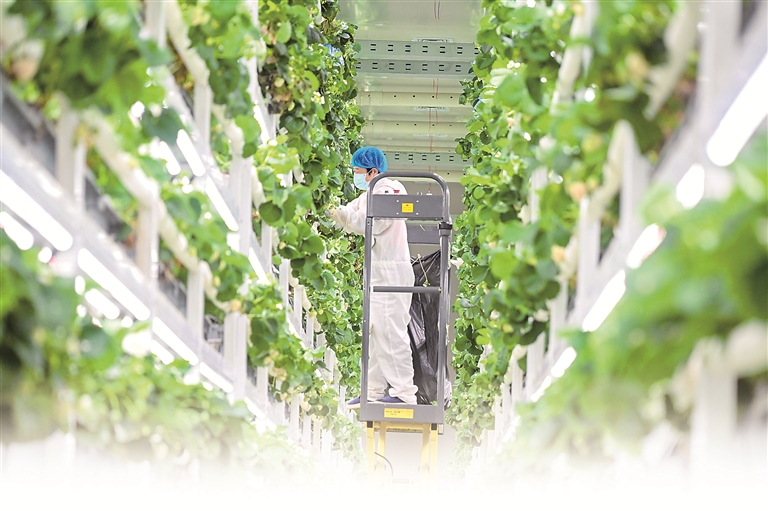 5月15日,内蒙古自治区乌兰察布市察右前旗,工人在数智草莓基地无菌车间内打理草莓。图片来源:视觉中国
