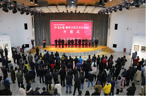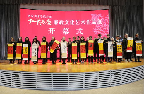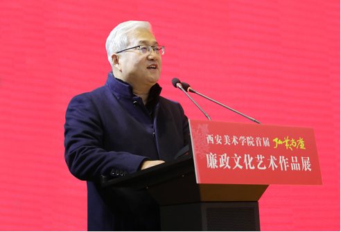 11月23日下午,由中共西安美术学院党委、中共西安美术学院纪律检查委员会、陕西省监委驻西安美术学院监察专员办公室主办的学院首届“弘美尚廉”廉政文化艺术作品展在学院美术馆A馆开幕。陕西省纪委副书记、陕西省监委副主任高山,陕西省监委委员张小明,陕西省纪委监委驻省教育厅纪检监察组组长刘振涛,陕西省纪委宣传部部长刘志彬,陕西省纪委监委第四监督检查室副主任高巍,西安美术学院党委书记李智军,院长朱尽晖及院领导班子其他成员出席开幕式。学院全体纪委委员,各党总支书记、直属党支部书记、纪检委员,各教学单位、职能处室科级及以上党员领导干部,2020年新入职的全体青年教职工,参展作者和部分学生党员,共200余人参加了开幕式。开幕式由院党委副书记、纪委书记、监察专员李翔宇主持。