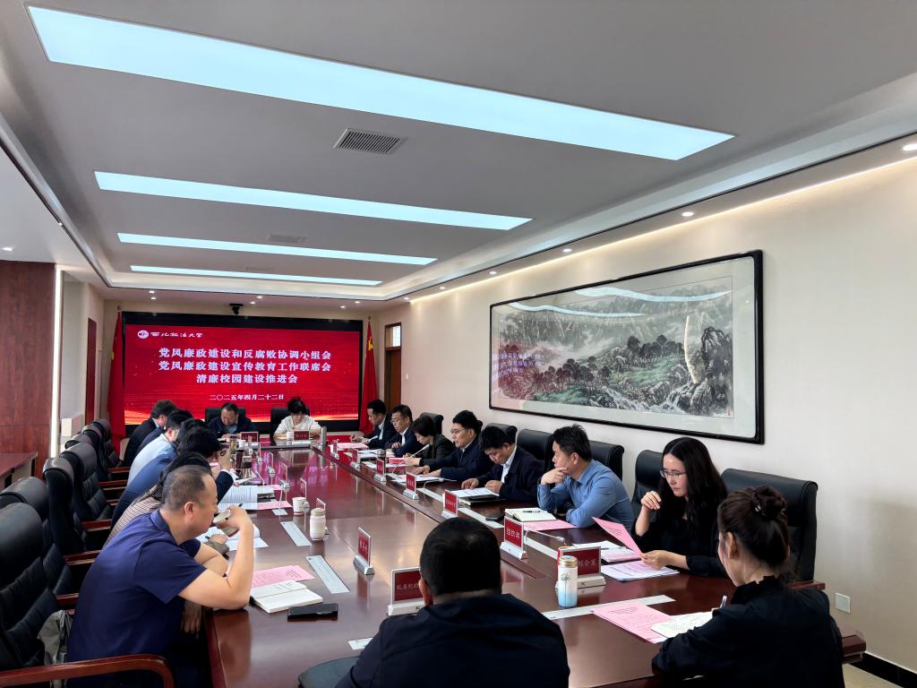 4月22日,西北政法大学纪委召开党风廉政建设和反腐败协调小组会暨党风廉政建设宣传教育工作联席会、清廉校园建设推进会,安排部署党风廉政建设有关工作。校党委副书记、纪委书记、监察专员刘志彬参加会议并讲话。