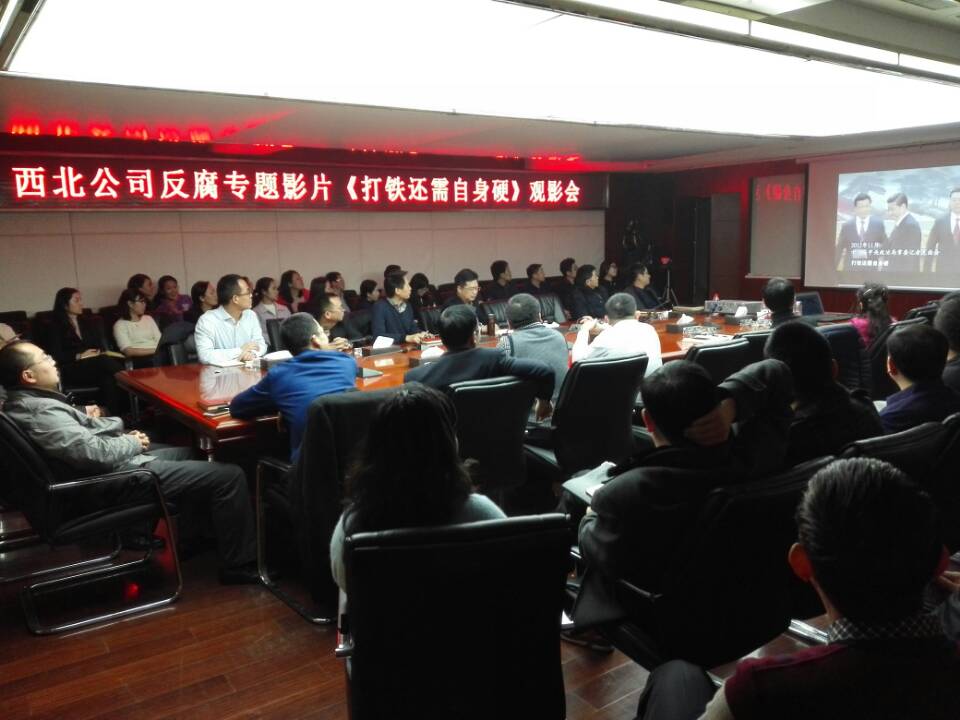 为落实好党中央、局纪委《关于组织观看电视专题片〈打铁还需自身硬〉的通知》要求,1月5日下午,中建三局西北公司纪委在11楼大会议室举办反腐专题影片《打铁还需自身硬》观影研讨会,公司总部全体党员领导干部、西安地区经理部领导班子成员以及专兼职纪检人员共计50余人参加了此次活动。