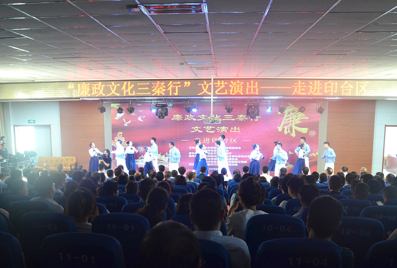 8月9日下午,由省纪委监委主办,省文化和旅游厅承办,区纪委监委、区文化和旅游文物局协办,陕西当代实验话剧研究院演出的“廉政文化三秦行”文艺演出在印台区职教中心四楼阶梯教室举行。市纪委常委、监委委员张宁国,区人大常委会主任郭爱侠,区政协主席陈家奎,区委副书记邓治林,区委常委魏亚宁、樊斌、陈会理、焦宝峰、杨亭等在家区级领导,以及副科级以上领导干部一同观看演出。