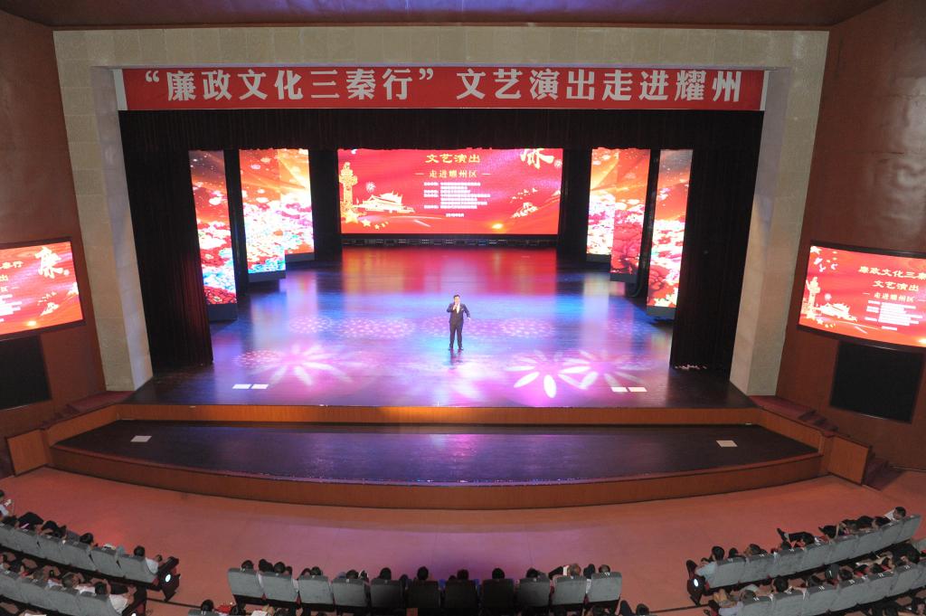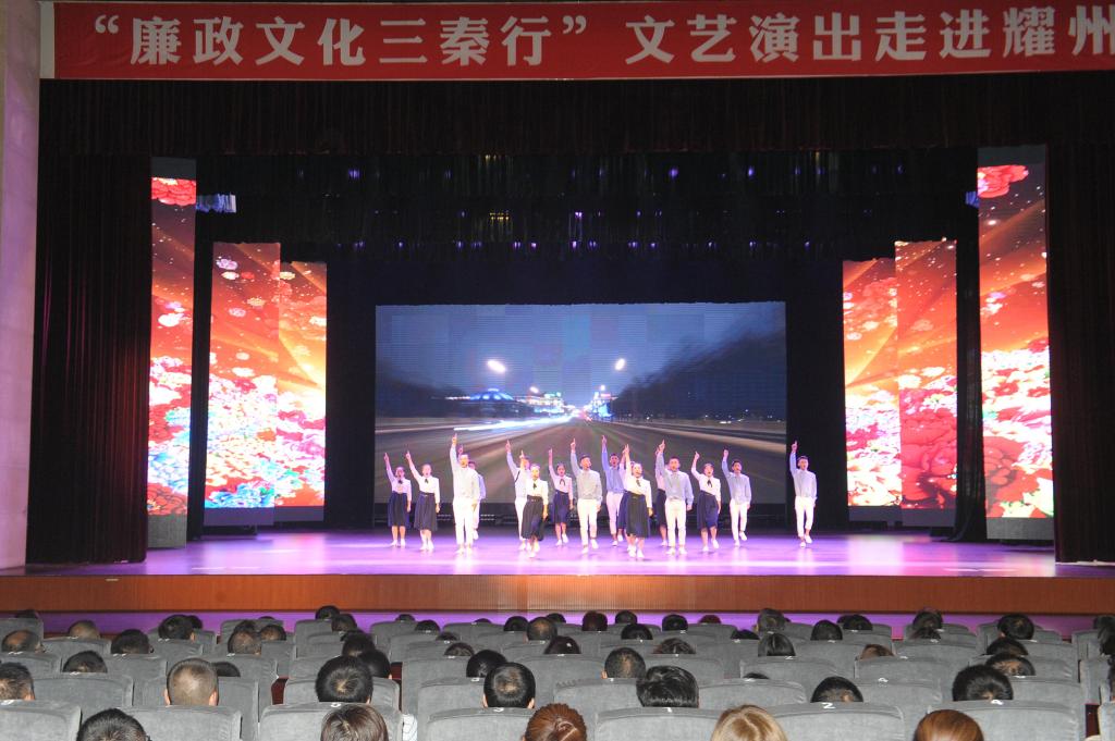 在耀州区是全市巡演活动在区县开展的首场演出。本次演出由区纪委监委、区文化和旅游文物局协办,在耀州区锦阳新城文化艺术中心举办,陕西当代实验话剧研究院表演了以廉政文化为主题的歌舞、小品、情景朗诵剧等精彩节目,传播了清正廉洁的价值理念,展现了广大党员干部勤政廉政的精神风貌。演出现场座无虚席,反响热烈,全区670余名党员领导干部认真观看,深受启迪。“廉政文化三秦行”文艺演出活动受到大家一致赞誉。(耀州区纪委监委)